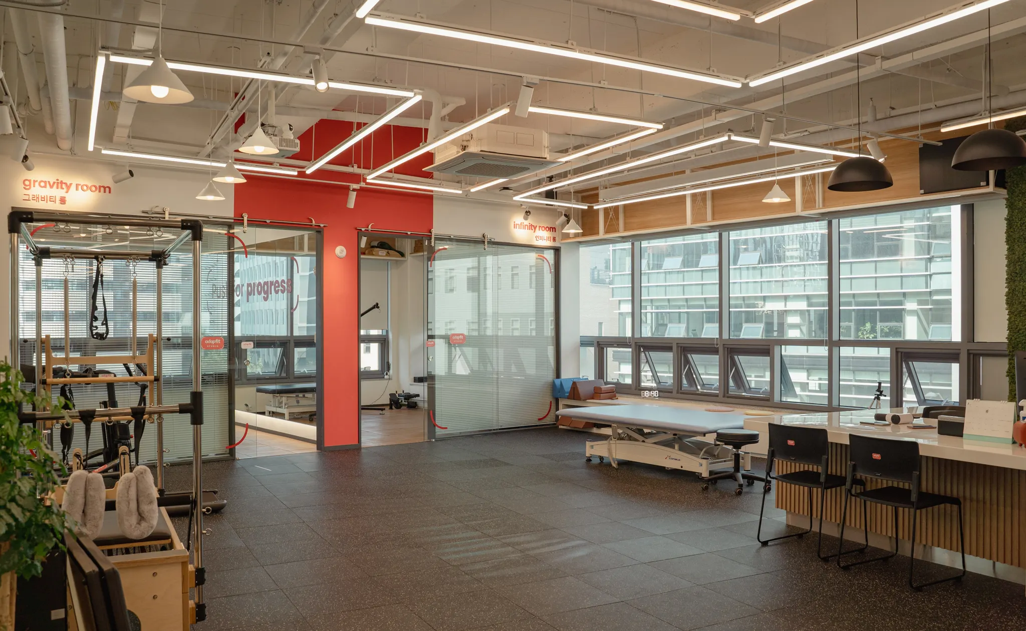 둘째, 모듈형 스튜디오 형태일 것. 이 스튜디오 모델이 확산되려면 일반 운동센터가 자신들의 조건에 맞게 공간과 프로그램을 조합할 수 있어야 한다고 생각했다. 그래서 나온 아이디어가 ‘모듈형’ 스튜디오였다. 공간을 여러 개로 나누고 각기 다른 운동 프로그램을 넣어, 운동센터의 필요와 선호에 따라 취사선택 할 수 있게 하는 것이다.