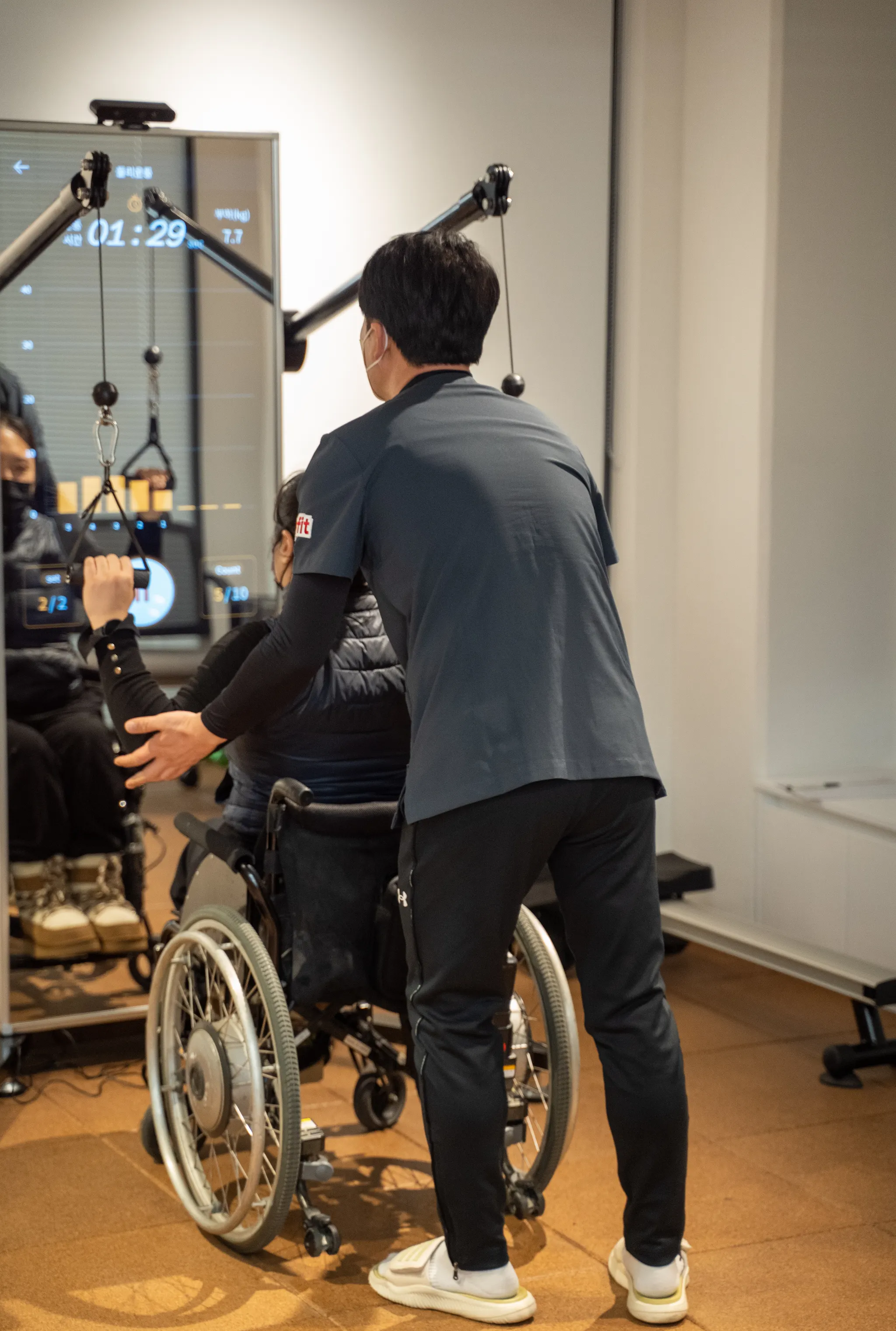 한편, 운동에 비용을 지불하는 장애인 고객을 발굴해야 하는 만큼, 우리만의 차별화된 프로그램이 있어야 한다고 생각했다. 그래서 일반적인 근력이나 유산소 운동 외에 장애인에게 맞춤형으로 제공할 수 있는 커리큘럼을 고민했는데, 이때 눈에 들어온 것이 리프트온 트램과 저항 풀리식 케이블 머신이었다.