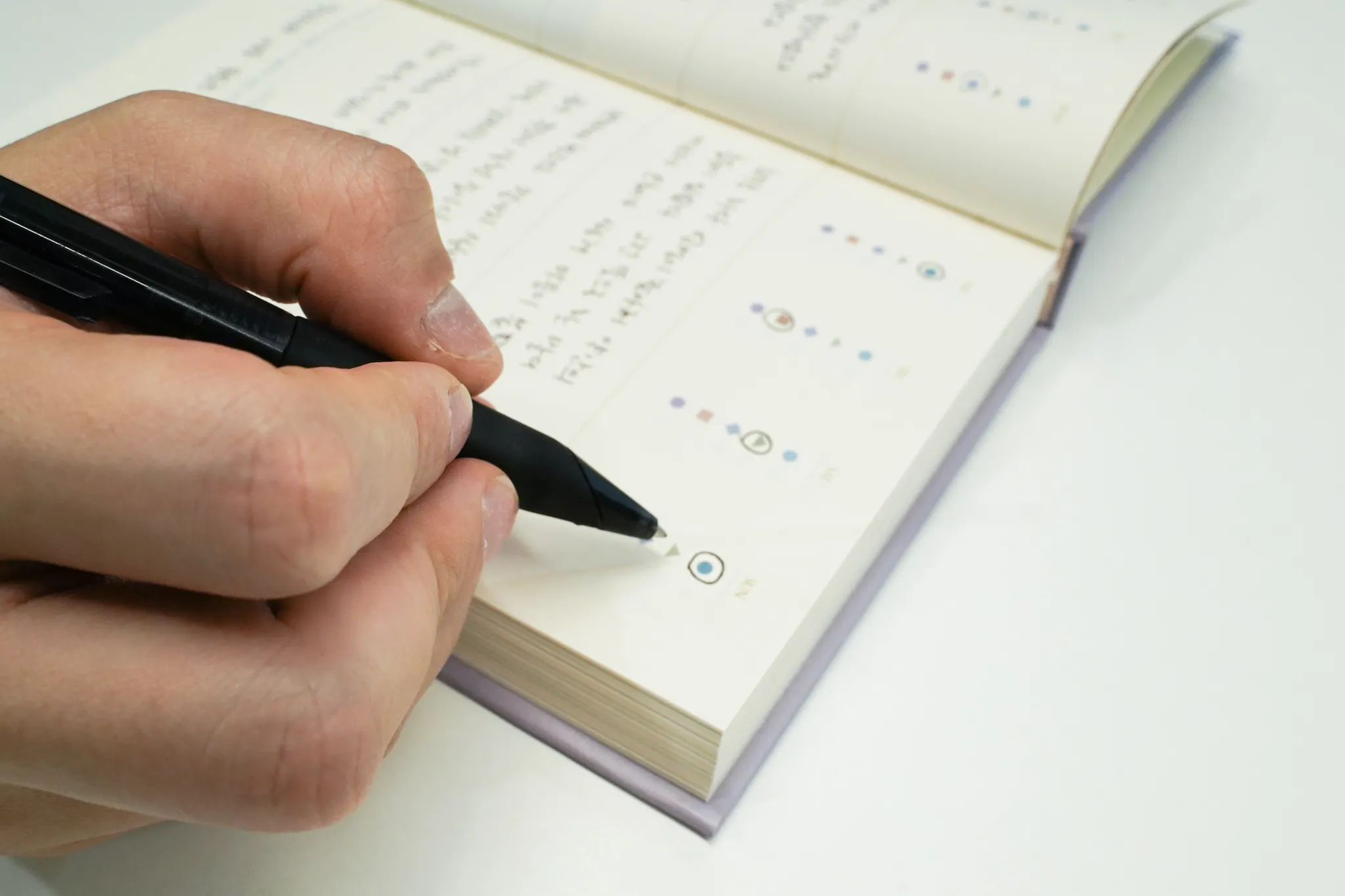 기존의 빈 노트 대신, 정신의학과 전문의의 심리 치유 다이어리 <오늘의 마음>을 활용했다. 매일매일의 마음 상태를 행복지수나 간단한 메모로 기록할 수 있어, 마음건강 관리 습관을 기르고 중요성을 느끼기에 적격이라고 생각했다.