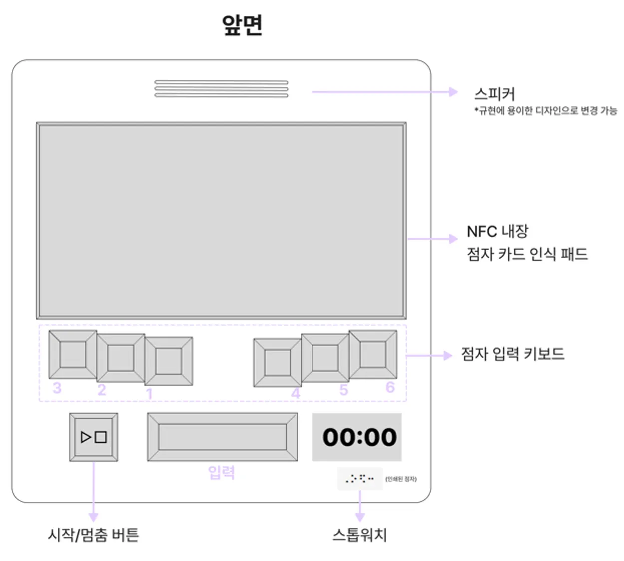 시중에 점자 학습 교구가 많이 없는 이유는 기술 개발에 매몰되어 있기 때문일 수도 있다고 생각했다. 최근 기술의 발달로 점자를 입력하면 작은 점자 셀이 솟아오르는 기기들이 개발되고 있는데. 이 점자 셀은 즉각적으로 튀어나오는 동시에 손으로 눌렀을 때 안으로 들어가지 않아야 하는 고급 기술로, 구현의 난이도가 매우 높다. 주로 일본에서 전량 수입하기 때문에 구입비와 수리비가 비싸다. 그래서 우리는 점자 셀은 처음부터 배제하고, 난이도 낮은 기술로 빠르게 개발하고 빠르게 효과를 확인하고자 했다.