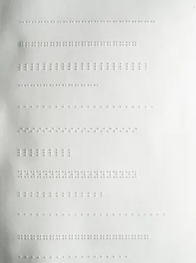 점자. 6개 점이 한 묶음으로 이루어진 특수 문자로 시각장애인의 읽기 행위를 위해 만들어졌다. 주로 검지, 중지, 약지의 손가락 끝 감각을 사용해 점자를 읽는다. 어떻게 손가락 끝 감각을 사용할까?