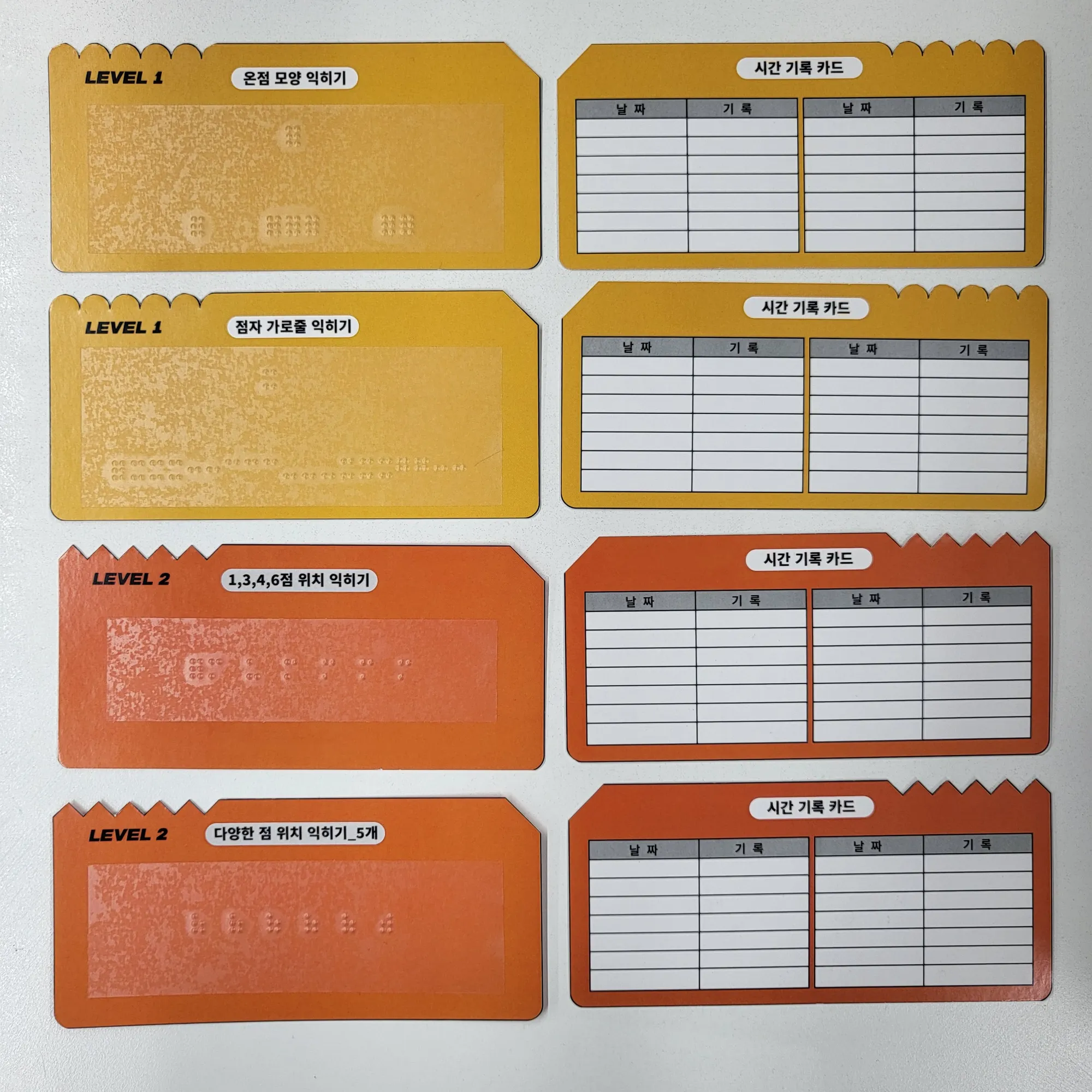 그런데 이 과정은 지루하다. 위에서 보여준 점자 연습지를 몇 번 만져야 손끝 감각만으로 구분할 수 있을지 생각해보자. 성인도 어려운데 시각장애 아동들은 어떨까?